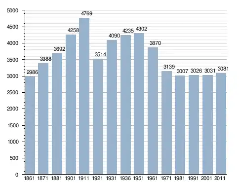 في سنة 1861 بلغ عدد السكان 2٬986 نسمة، وتطور العدد ليصل في سنة 2011 لـ 3٬081 نسمة.