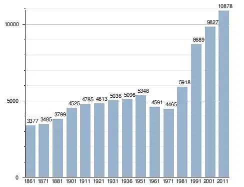 في سنة 1861 بلغ عدد السكان 3٬377 نسمة، وتطور العدد ليصل في سنة 2011 لـ 10٬878 نسمة.