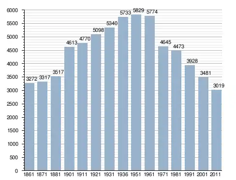 في سنة 1861 بلغ عدد السكان 3٬272 نسمة، وتطور العدد ليصل في سنة 2011 لـ 3٬019 نسمة.