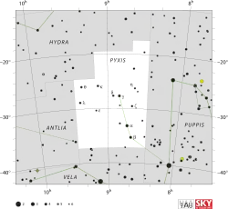 | ألمع نجم | α Pyx (3.68قدر ظاهري) |