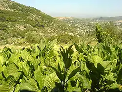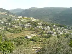 ![]() منظر عام لبيت ياشوط من الأعلى ومدينة جبلة في الافق | |