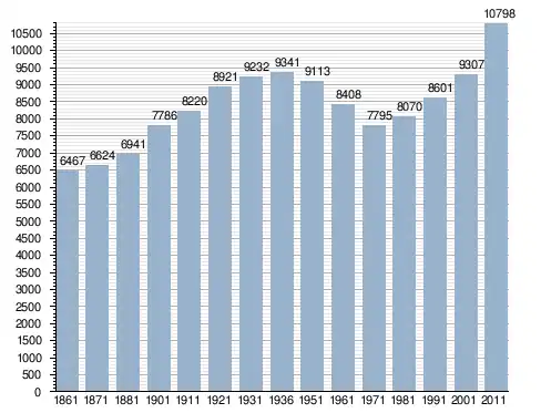 في سنة 1861 بلغ عدد السكان 6٬467 نسمة، وتطور العدد ليصل في سنة 2011 لـ 10٬798 نسمة.