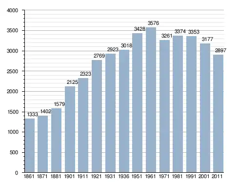 في سنة 1861 بلغ عدد السكان 1٬333 نسمة، وتطور العدد ليصل في سنة 2011 لـ 2٬897 نسمة.