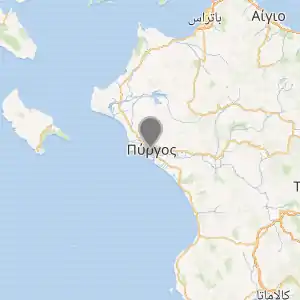 تقع المدينة في وسط السهل الممتد على طول الساحل الغربي لشبه جزيرة المورة، بحيث توجد على مسافة 4 كيلومتر من ساحل خليج كيباريسيا التابع للبحر الأيوني. تبعد عن باتراس مسافة 96 كيلومتر، وعن أثينا مسافة 320 كيلومتر.