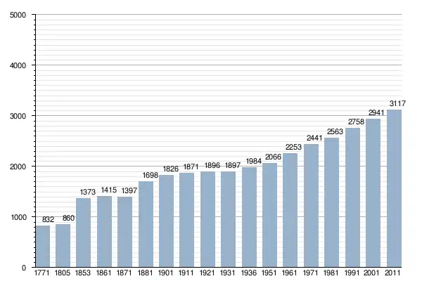 في سنة 1771 بلغ عدد السكان 832 نسمة، وتطور العدد ليصل في سنة 2011 لـ 3٬117 نسمة.