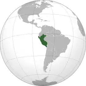 بِيرُو[12] (بالإسبانية: Perú) أو البيرو أو رسمياً جمهورية بيرو (بالإسبانية: República del Perú) هي دولة في غرب أمريكا الجنوبية. يحدها من الشمال الإكوادور وكولومبيا ومن الشرق البرازيل ومن الجنوب الشرقي بوليفيا ومن الجنوب تشيلي أما من الغرب فتطل على المحيط الهادئ، وعاصمتها لِيمَا.[12]