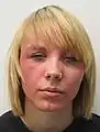 صبغة نسيج مقشور بسبب التلامس مع البنزويل بيروكسايد المركز.