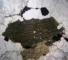 يتكون الجزء العلوي من الغلاف الأرضي من المعدنين الرئيسيين الأوليفين والبيروكسين. وتبين العينة في الصورة وجود الأرثوبيروكسين الأسود والديوبسيد المحتوي على الكروم ولونه أخضر فاتح والأوليفين (أخضر مصفر)، ويغلب في العينة الأوليفين. ويغلب وجود البيروكسين والفلدسبار في البازلت.