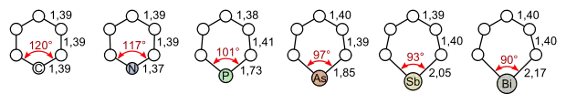 ![]() مقارنة بين البيريدين مع حلقات عطرية غير متجانسة أخرى من حيث طول الرابطة والبنية الجزيئية. |
