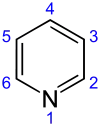 يبدأ ترقيم الحلقة انطلاقاً من ذرّة النتروجين، وتُرمّز ذرّات الكربون بالأرقام وفق ذلك أو باستخدام السوابق وفق نمط الاستبدال في الحلقات العطرية: أورثو وميتا وبارا أو في بعض الأحيان باستخدام أحرف الأبجدية اليونانية (α-γ). وفقاً لما سبق فإنّ ذرة الكربون ألفا α (أورثو) وبيتا β (ميتا) وغاما γ (بارا) تشير إلى الذرّات ذات الأرقام 2 و 3 و 4 على الترتيب.