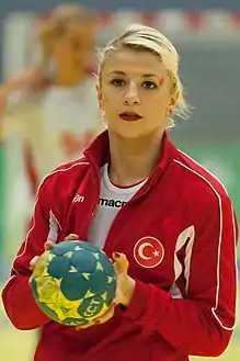 - "Perihan Topaloglu". European Handball Federation. مؤرشف من الأصل في 28 مارس 2016. اطلع عليه بتاريخ 23 يناير 2016. الوسيط