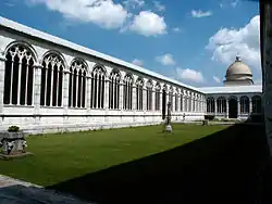 وتكثر فيها المعالم التاريخية والعمرانية العائدة إلى القرون الوسطى التي ازدهرت فيها المدينة وأصبحت واحدة من أغنى مدن جنوبي أوروبا، فمازالت تحتفظ بأجزاء من أسوار المدينة القديمة (طولها 10.5كم) وبأبنيتها الدينية التي يتصدرها مجمع ساحة المعجزات الواقع في الجزء الشمالي الغربي من المدينة الوسيطة داخل السور، ويتألف من كاتدرائية، وبناء الأسقفية وبرج الأجراس والمقبرة مقصد السائحين والزوار، أقدمها بناء الكاتدرائية الذي بدأ تشييده عام 1063 واستمرت أعمال الزخرفة والتزيينات والإضافات إليه حتى مطلع القرن الرابع عشر (1302)، أما بناء الأسقفية فقد تم بناؤه عام 1152 وانتهى في القرن الرابع عشر، وهو بناء دائري تعلوه قبة تحمل مؤثرات إسلامية شرقية، داخلها غني بالزخارف وبدائع الفنون، ويعد بمجمله تحفة معمارية رائعة الجمال.