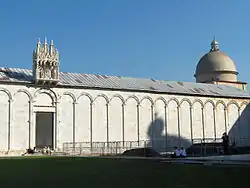 ومع ذلك يبقى برج الأجراس المعروف ببرج بيزا المائل مَعلَماً معمارياً فريداً من نوعه في العالم، بدأ العمل فيه عام 1174 وانتهى في القرن الرابع عشر أيضاً، وهو بناء أسطواني مؤلف من ثماني طبقات بارتفاع 56م من المرمر، تأثر بعدم استواء أساساته فمال البرج مقدار 5.2م عن محوره العمودي، أو ما يعادل 10درجات واستقر عندها، فأكسبه شهرة عالمية، وقد تمت تقوية أساساته بحقنها بالإسمنت، لكن خطر انهياره لازال قائماً. أما المقبرة فبُنيت على النمط القوطي الإيطالي. وفي بيزا الكثير من الكنائس العائدة للعصر الذهبي للمدينة، منها كنائس سان بيرينو وسان فريديانو وسان نيكولا وبرجها وغيرها، إضافة إلى عدد من العمائر التاريخية الجميلة.