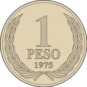 ظهر في 29 سبتمبر 1975, العملات المعدنية 1, 5, 10, 50 و100 بيزو، أما الورقية 5, 10 و50 بيزو. ثم ظهرت عملات بيزو قيمتها أعلى بكثير 500 بيزو في مايو 1977, 1000 بيزو في يونيو 1978, 5000 في يوليو 1982, 10,000 في 1989, 2000 في 1997 و20,000 في ديسمبر 1998, وتم تحويل 5, 10, 50, 100 و500 بيزو إلى معدنية و1000, 2000, 5000, 10000, 20000 ورقية.