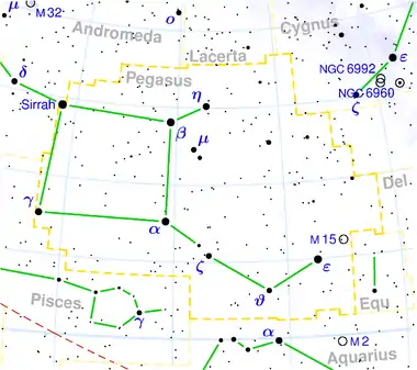 كوكبة الفرس الأعظم وفيها التجمع النجمي مسييه 15 (M 15) الذي يوجد فيها السديم الكوكبي بيزا 1 .