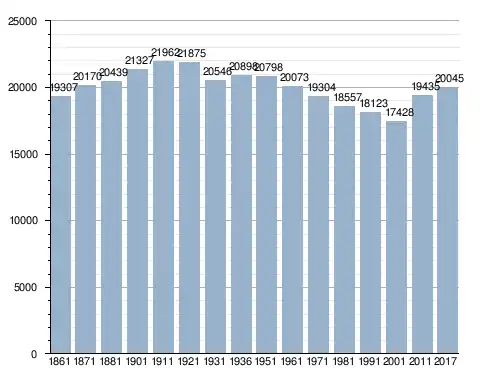 في سنة 1861 بلغ عدد السكان 19٬307 نسمة، وتطور العدد ليصل في سنة 2017 لـ 20٬045 نسمة.