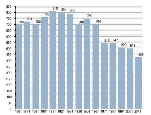 في سنة 1861 بلغ عدد السكان 699 نسمة، وتطور العدد ليصل في سنة 2011 لـ 428 نسمة.