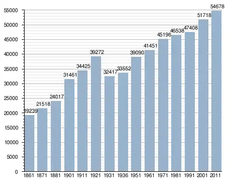 في سنة 1861 بلغ عدد السكان 19٬239 نسمة، وتطور العدد ليصل في سنة 2011 لـ 54٬678 نسمة.