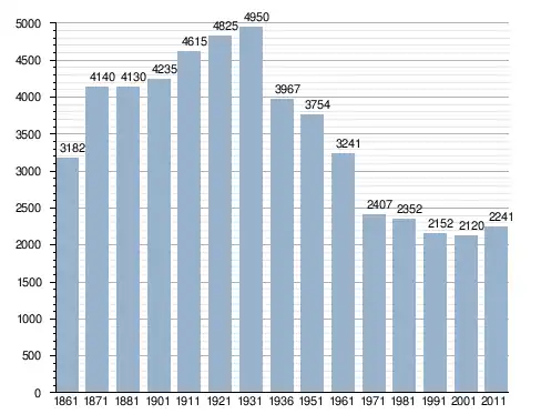 في سنة 1861 بلغ عدد السكان 3٬182 نسمة، وتطور العدد ليصل في سنة 2011 لـ 2٬241 نسمة.