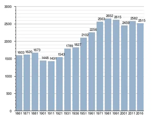 في سنة 1861 بلغ عدد السكان 1٬603 نسمة، وتطور العدد ليصل في سنة 2016 لـ 2٬515 نسمة.