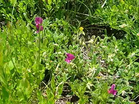 النبات عشبي معمر يتحمل البرودة. الورقة ريشية مركبة تنتهي بمحلاق. الأزهار حمراء داكنة. الثمرة قرن.