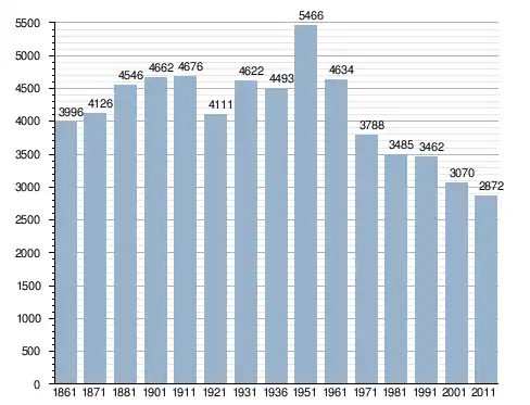 في سنة 1861 بلغ عدد السكان 3٬996 نسمة، وتطور العدد ليصل في سنة 2011 لـ 2٬872 نسمة.