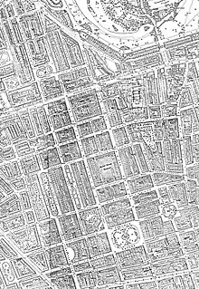 شارع بيكر، خريطة لمسح الذخائر لعام 1875.[4]