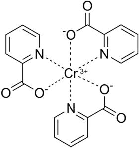 بيكولينات الكروم الثلاثي مركب كيميائي له الصيغة Cr(C6H4NO2)3 ، ويكون على شكل بلورات حمراء قانئة. وهو معقد تساندي يستخدم بشكل أساسي للحماية من أو علاج عوز الكروم (نقص الكروم). يحتاج الجسم إلى كميات قليلة من الكروم من أجل أداء الإنسولين في الجسم، إلا أن عوز الكروم نادر جداً، ولوحظ فقط عند المرضى في المستشفيات الذين يخضعون لحمية محددة على المدى الطويل.[3] لم يكتشف وجود أي قاعدة كيميائية حيوية تتطلب وجود الكروم في جسم الإنسان.[4]