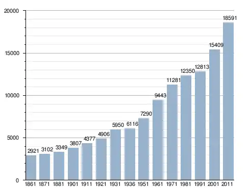 في سنة 1861 بلغ عدد السكان 2٬921 نسمة، وتطور العدد ليصل في سنة 2011 لـ 18٬591 نسمة.
