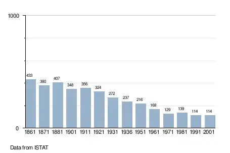 |CitationClass=تم تجاهله (مساعدة) - كل التركيبة السكانية وغيرها من الإحصاءات: الإيطالية معهد الإحصاء الوطني للإحصاءات.
