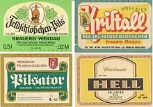 - من لون خفيف إلى اللون الذهبي بمذاق مر أو ترابيً - Beck's ، Bitburger ، Flensburger ، Fürstenberg ، Holsten ، Jever ، König ، Krombacher ، Radeberger ، St. Pauli Girl ، Veltins ، Warsteiner ، Wernesgrüner
