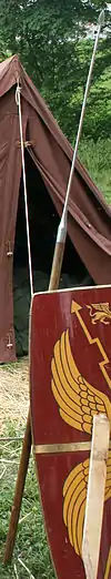 - Cowan, Ross (2003). "Equipment". Roman legionary: 58 BC - AD 69. Osprey Publishing. صفحات 25–26. ISBN 978-1-84176-600-3. مؤرشف من الأصل في 31 ديسمبر 2013. اطلع عليه بتاريخ 08 فبراير 2012. الوسيط