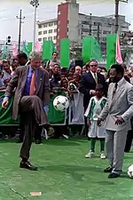 إدسون أرانتيس دو ناسيمنتو (بالبرتغالية: Edson Arantes do Nascimento) المعروف بـ بيليه (بالبرتغالية: Pelé)، هو لاعب كرة قدم برازيلي معتزل،[11] من مواليد 23 أكتوبر 1940 في مدينة تريس كاراكوس في البرازيل، يعتبر بيليه بنظر كثيرين أفضل لاعب في تاريخ كرة القدم.[12] وفي البرازيل يعتبر بيليه بطلا قومياً، وقد لعب كمهاجم وكصانع ألعاب، وقد اشتهر بلعب للكرات الخلفية، وقال أنه نادم لأنه لم يسجل مثل هذه الكرة في كأس العالم.