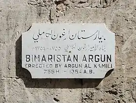|CitationClass=تم تجاهله (مساعدة); تحقق من التاريخ في:|سنة=(مساعدة) - شحادة, كمال. "البيمارستان". الموسوعة العربية. مؤرشف من الأصل في 23 سبتمبر 2016. اطلع عليه بتاريخ 12 كانون الأول 2011. الوسيط