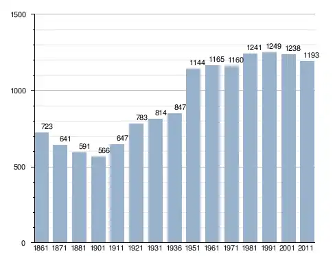 في سنة 1861 بلغ عدد السكان 723 نسمة، وتطور العدد ليصل في سنة 2011 لـ 1٬193 نسمة.