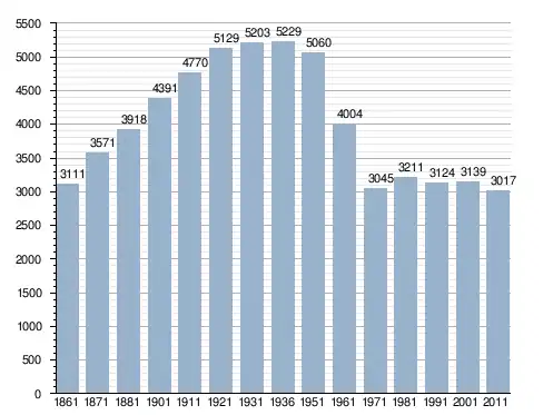 في سنة 1861 بلغ عدد السكان 3٬111 نسمة، وتطور العدد ليصل في سنة 2011 لـ 3٬017 نسمة.