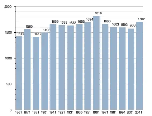 في سنة 1861 بلغ عدد السكان 1٬428 نسمة، وتطور العدد ليصل في سنة 2011 لـ 1٬702 نسمة.