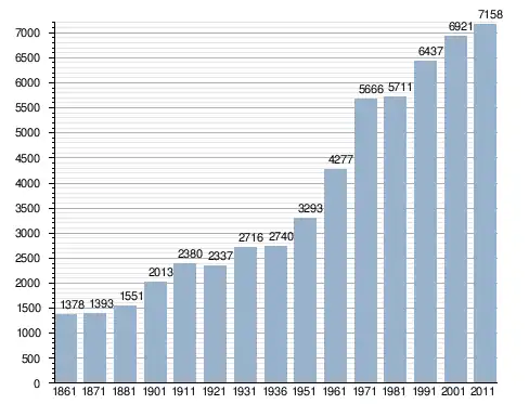في سنة 1861 بلغ عدد السكان 1٬378 نسمة، وتطور العدد ليصل في سنة 2011 لـ 7٬158 نسمة.