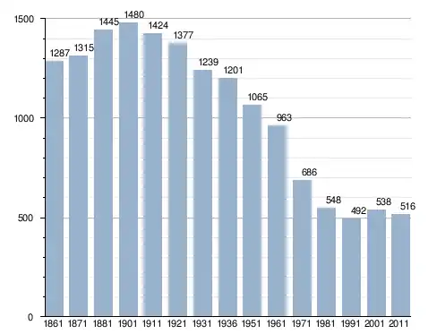 في سنة 1861 بلغ عدد السكان 1٬287 نسمة، وتطور العدد ليصل في سنة 2011 لـ 516 نسمة.