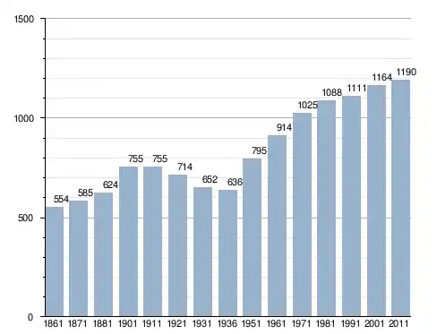 في سنة 1861 بلغ عدد السكان 554 نسمة، وتطور العدد ليصل في سنة 2011 لـ 1٬190 نسمة.