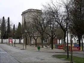 ![]() Town streets and trees with a square tower in the background Éboli Tower, Pinto | |||