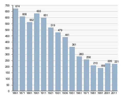 في سنة 1861 بلغ عدد السكان 674 نسمة، وتطور العدد ليصل في سنة 2011 لـ 221 نسمة.