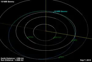 |CitationClass=تم تجاهله (مساعدة) - "Goldstone Delay-Doppler Images of 1999 RQ36". Asteroid Radar Research. Jet Propulsion Laboratory. مؤرشف من الأصل في 3 سبتمبر 2020. الوسيط