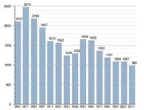 في سنة 1861 بلغ عدد السكان 2٬107 نسمة، وتطور العدد ليصل في سنة 2011 لـ 986 نسمة.