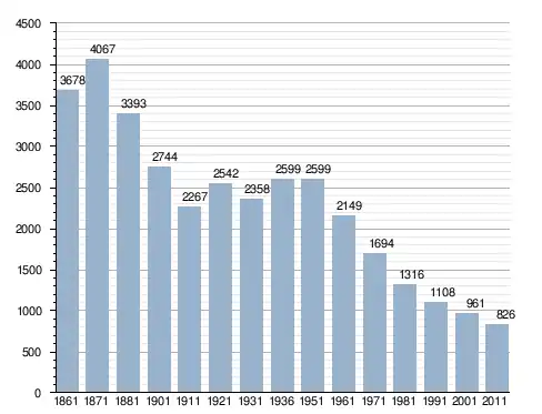 في سنة 1861 بلغ عدد السكان 3٬678 نسمة، وتطور العدد ليصل في سنة 2011 لـ 826 نسمة.