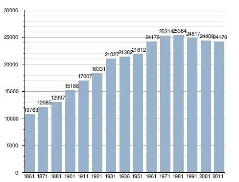 في سنة 1861 بلغ عدد السكان 10٬763 نسمة، وتطور العدد ليصل في سنة 2011 لـ 24٬179 نسمة.