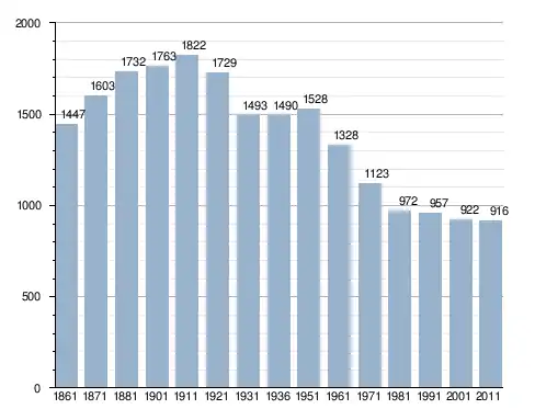 في سنة 1861 بلغ عدد السكان 1٬447 نسمة، وتطور العدد ليصل في سنة 2011 لـ 916 نسمة.