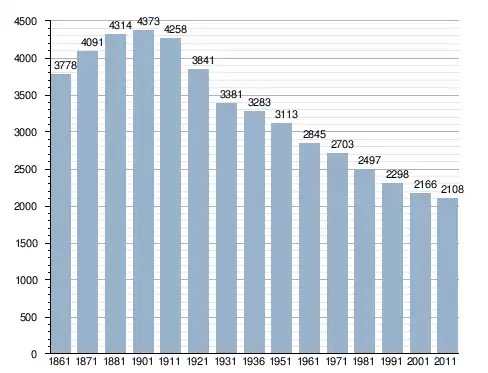 في سنة 1861 بلغ عدد السكان 3٬778 نسمة، وتطور العدد ليصل في سنة 2011 لـ 2٬108 نسمة.