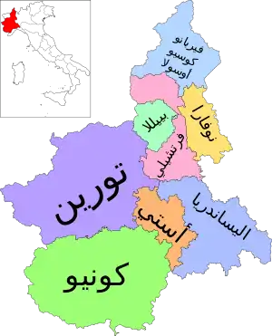 يتكون بييمونتي من ثمانية مقاطعات وهي: