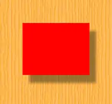 مثال على تأثير الظل، حيث يظهر المستطيل الأحمر يُلقي بظلّه على ما يبدو أنها نسيج خشبي.